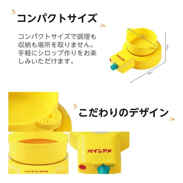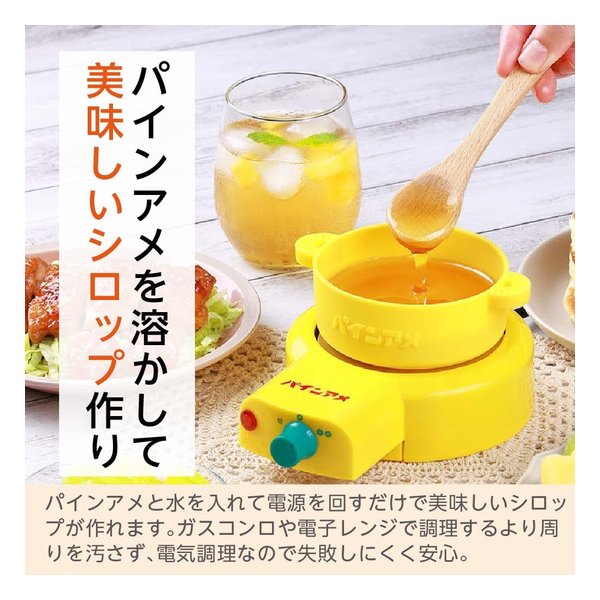 パインアメと水を入れて電源ダイヤルを回すだけで美味しいシロップが作れます。