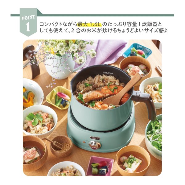 炊飯器としても使えて、2合のお米が炊けるちょうどよいサイズ感!