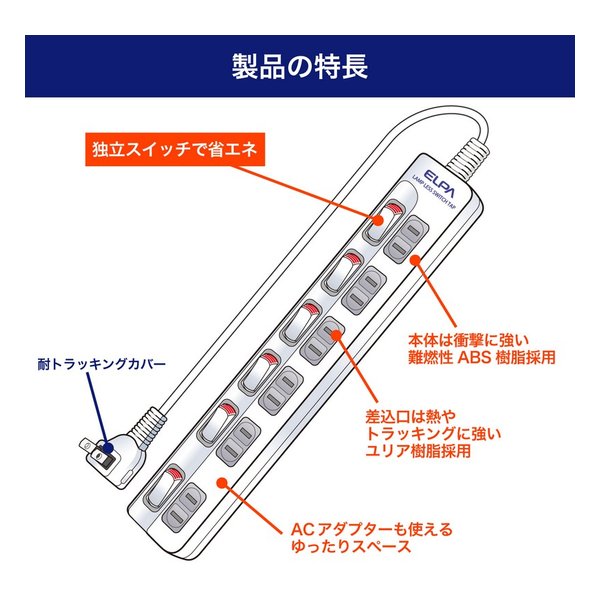 ●差込口は熱やトラッキングに強いユリア樹脂採用。