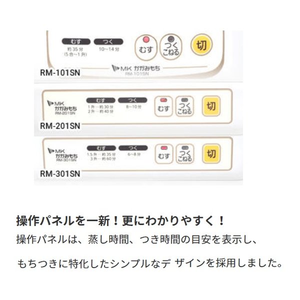 操作パネルは、蒸し時間、つき時間の目安を表示し、もちつきに特化したシンプルなデザインを採用しました。