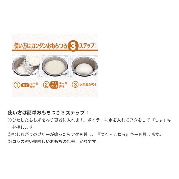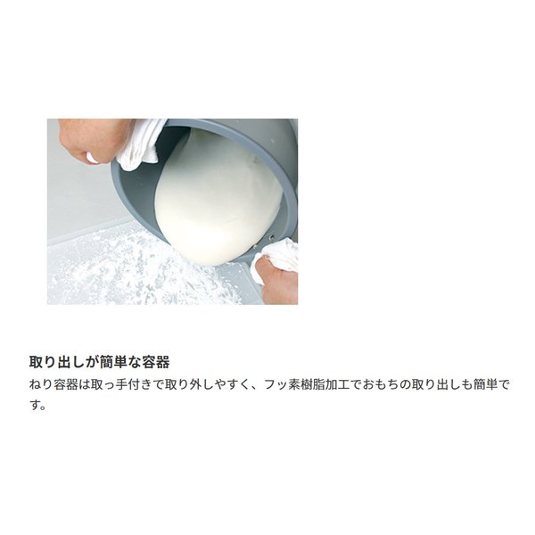 ねり容器は取っ手付きで取り外しやすく、フッ素樹脂加工でおもちの取り出しも簡単です。