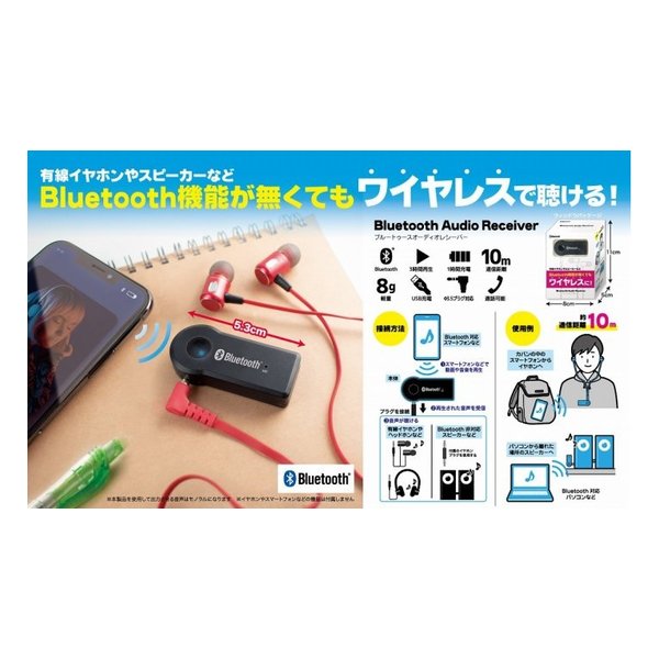 ブルートゥース機能が無いオーディオ機器でも、繋ぐだけで 様々な機器をブルートゥース化できるブ