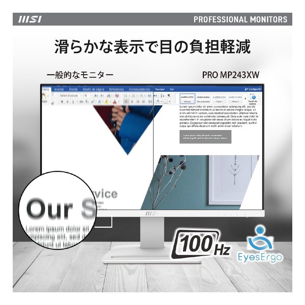 ●リフレッシュレート100Hz対応でなめらかな映像表示