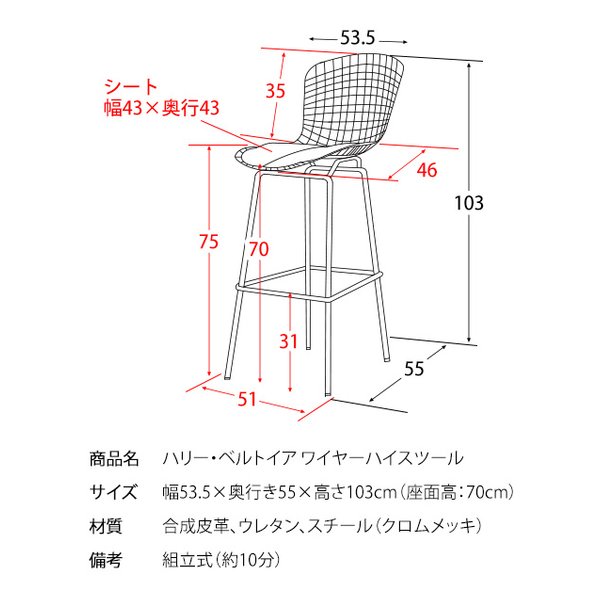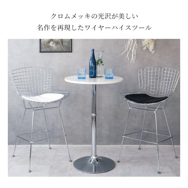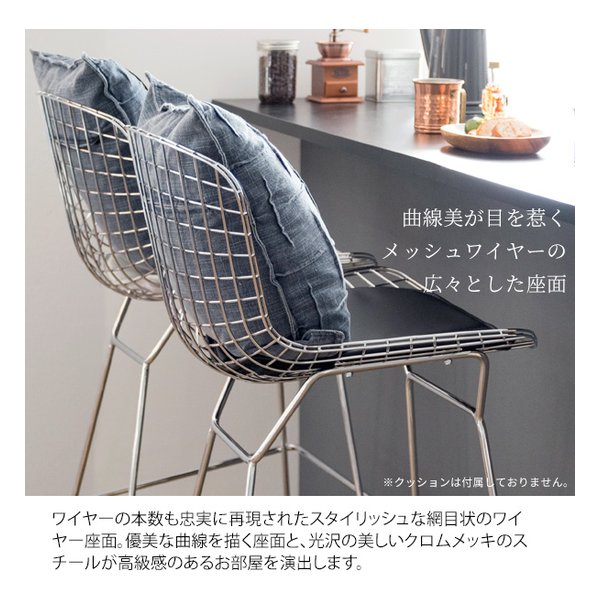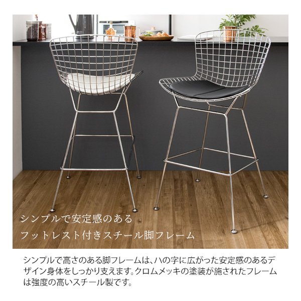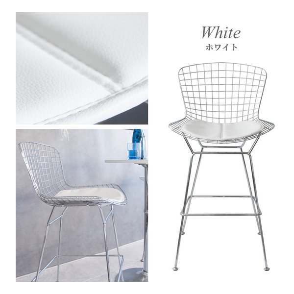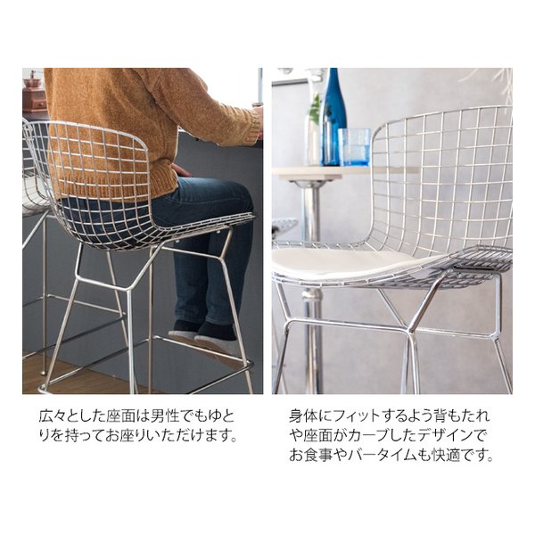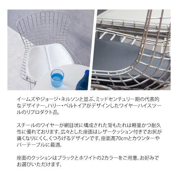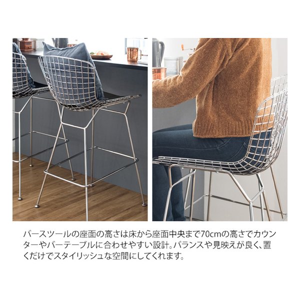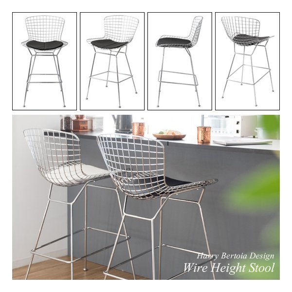 ●イームズやジョージ・ネルソンと並ぶ、ミッドセンチュリー期の代表的なデザイナー、ハリー・ベルトイアがデザインしたワイヤーハイスツールのリプロダクト品。