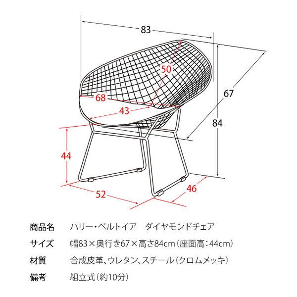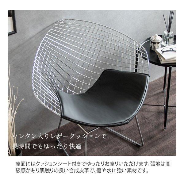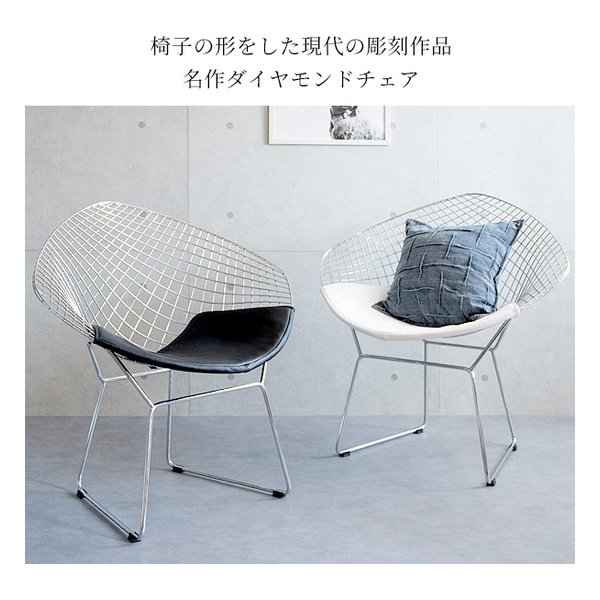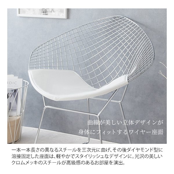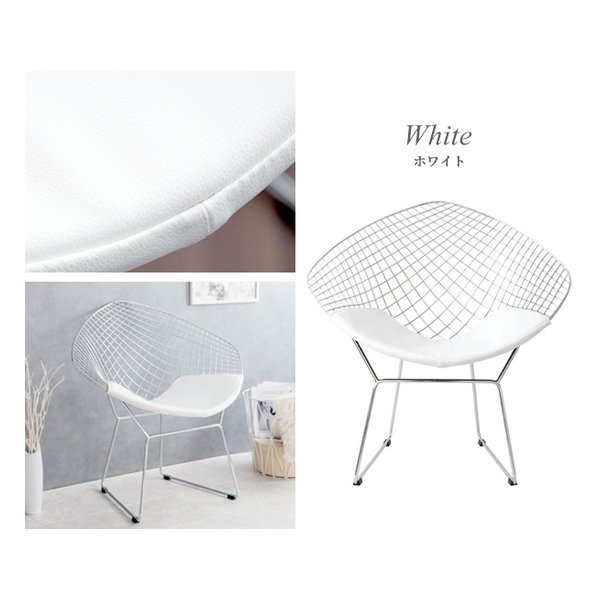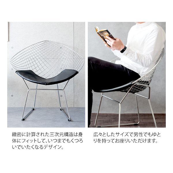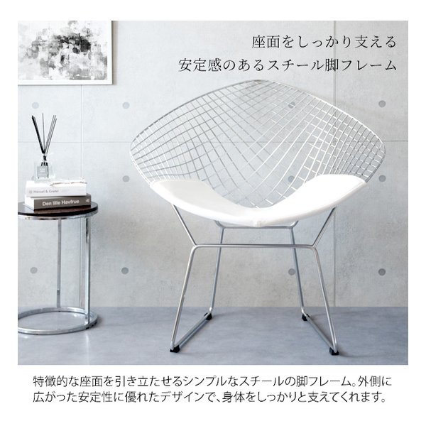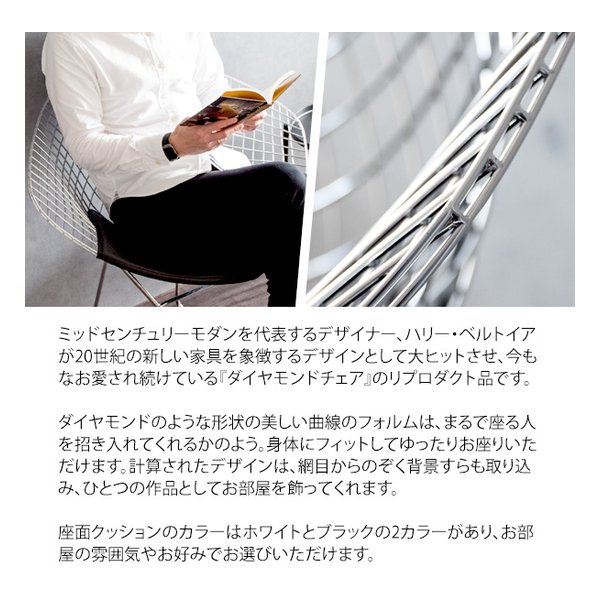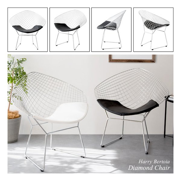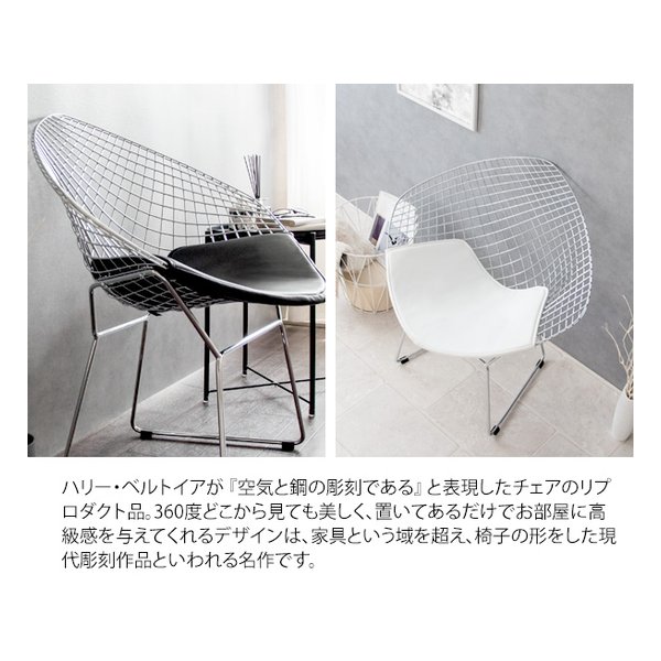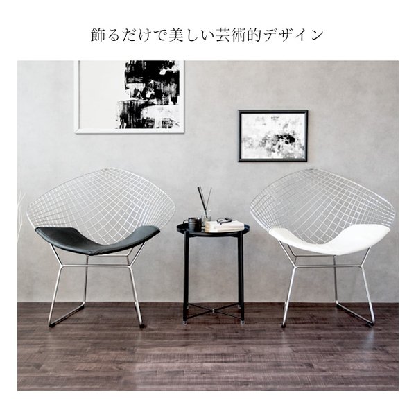 ●ミッドセンチュリーモダンを代表するデザイナー、ハリー・ベルトイアが20世紀の新しい家具を象徴するデザインとして大ヒットさせ、今もなお愛され続けている『ダイヤモンドチェア』のリプロダクト品です。