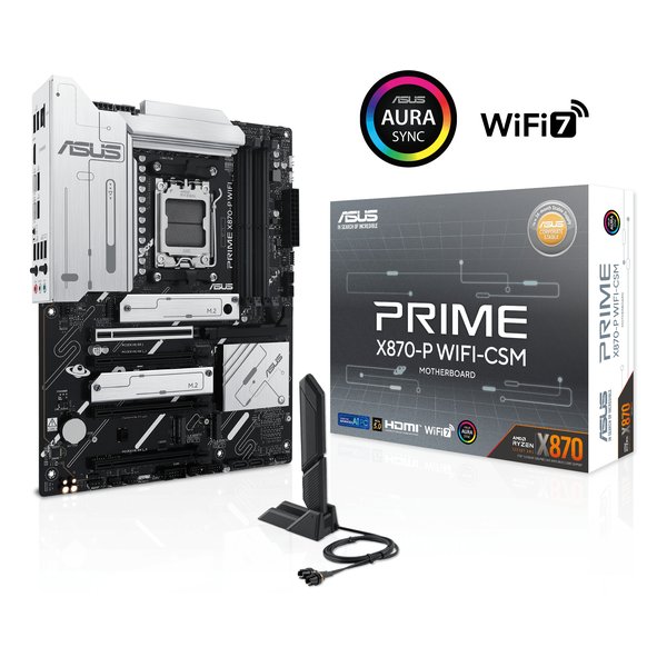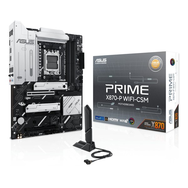 ●ASUS Prime シリーズのマザーボードは、AMD Ryzen ? 9000 シリーズ プロセッサの潜在能力を最大限に引き出すよう専門的に設計されています。堅牢な電源設計、包括的な冷却ソリューション、インテリジェントなチューニング オプションを誇る PRIME X870-P WIFI-CSM マザーボードは、直感的なソフトウェアとファームウェア機能を通じて、ユーザーや PC DIY ビルダーにさまざまなパフォーマンス最適化を提供します。高度な AI PC 対応として設計されており、要求の厳しい AI アプリケーションに必要なパワーと接続性を提供します。