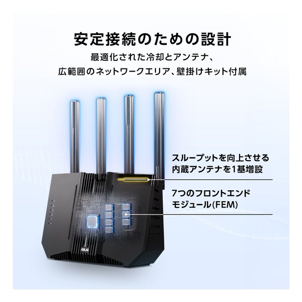 最大9,700Mbpsの高速通信を実現する超高速Wi-Fi 7ルーターにパワフルなクアッドコアCPUを搭載することで、処理能力を向上し、より多くのデバイスに対応。