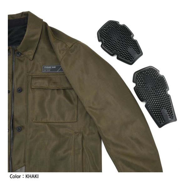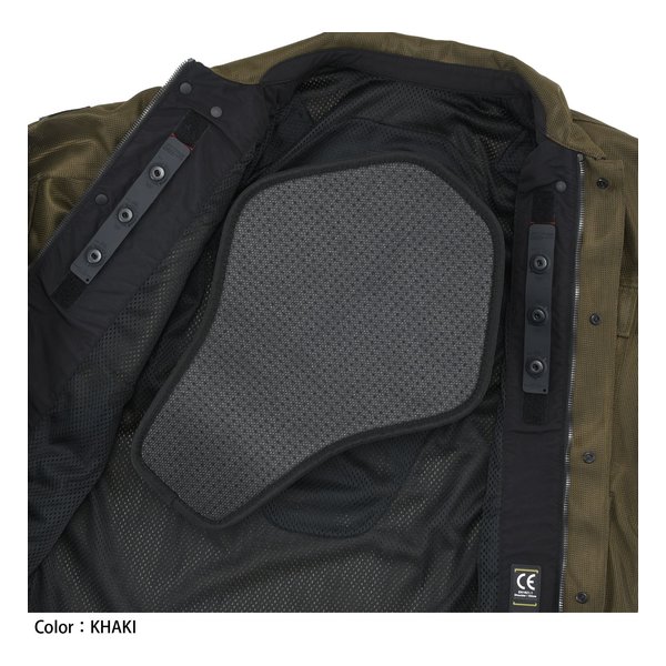 肩・肘には、衝撃吸収性能と柔軟性に優れたCE Lv.1プロテクター(ソフトタイプ)、背中にはフォームパッドを内蔵。
