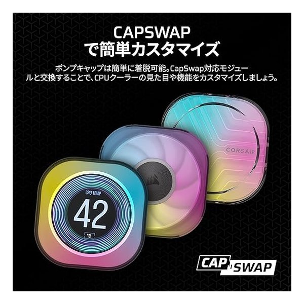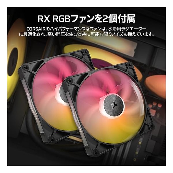 ポンプには20個のRGB LED、各ファンには8個のRGB LEDが搭載され、ダイナミックなイルミネーションが楽しめます。iCUEソフトウェアにより、システム全体で統一感のあるライトショーを作成できます。