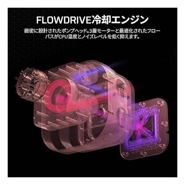 FlowDrive冷却エンジンを搭載し、3相ポンプと精密設計の冷却プレートにより、優れた冷却性能を提供します。予め塗布されたXTM70サーマルペーストで、効率的な熱伝導を実現します。