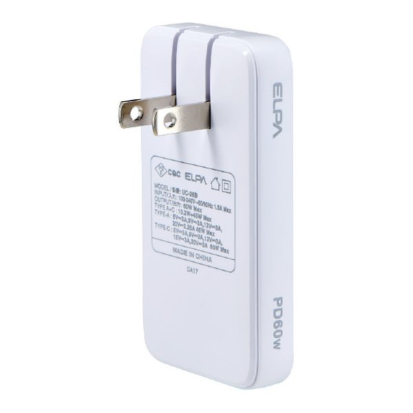 Type-Cポート:DC5V 3A/9V 3A/12V 3A/15V 3A/20V 3A 60WMax