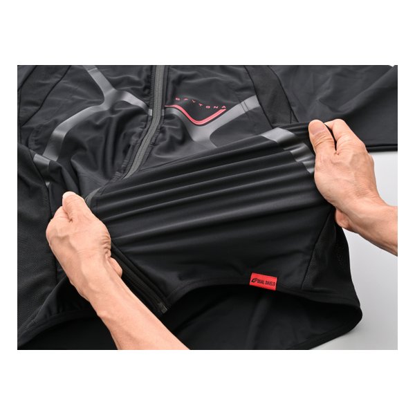●サムホールを用意したロングの袖丈で、肘プロテクターのずれを防ぎます。