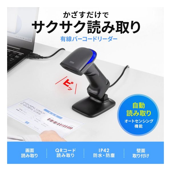 オートセンシング機能でバーコードをかざすだけで読み取りをすることができます。