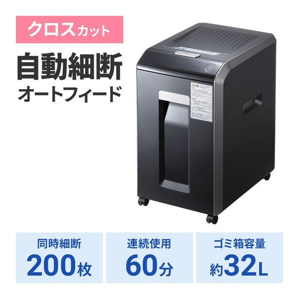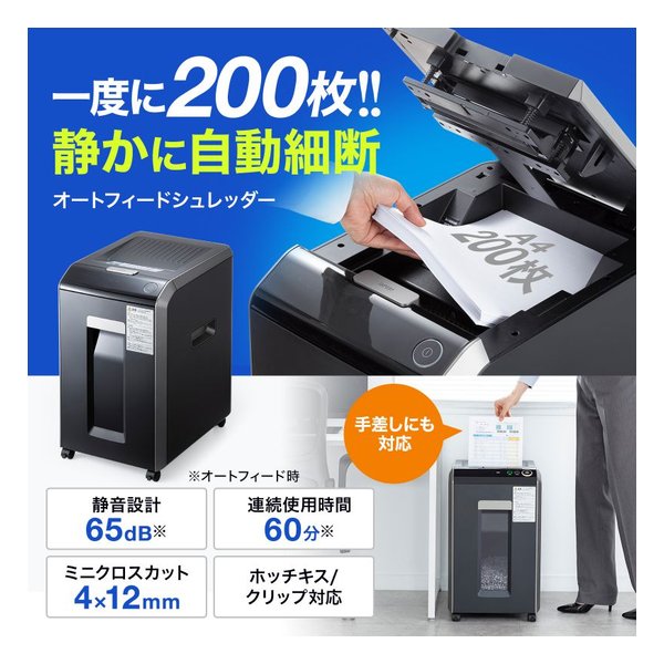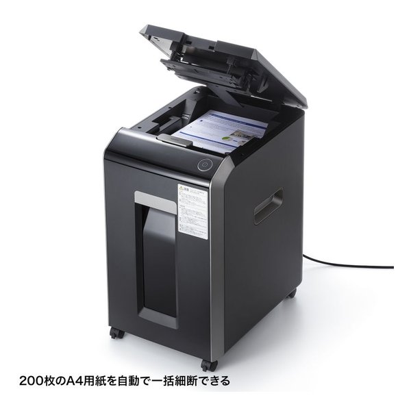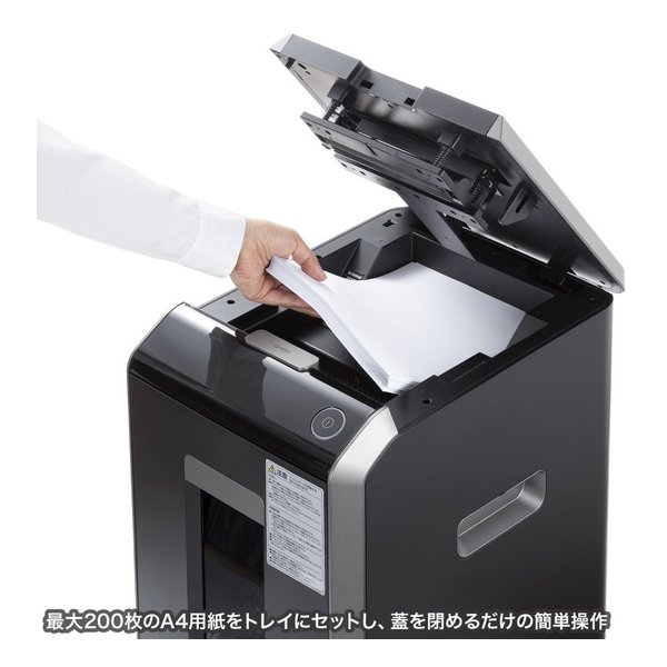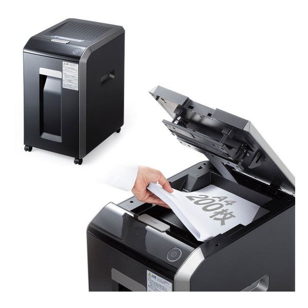 ●200枚のA4用紙を一括細断できる、オートフィードシュレッダーです。