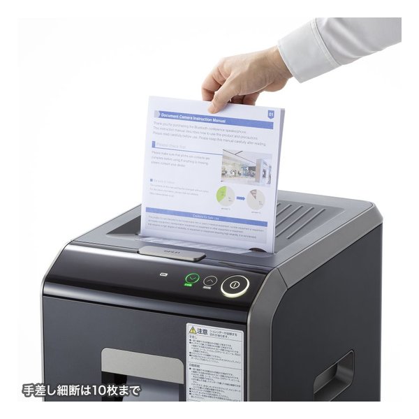 ●投入口に用紙が投入されると自動的に細断します。終了すると自動的に停止します。(手差しの場合)