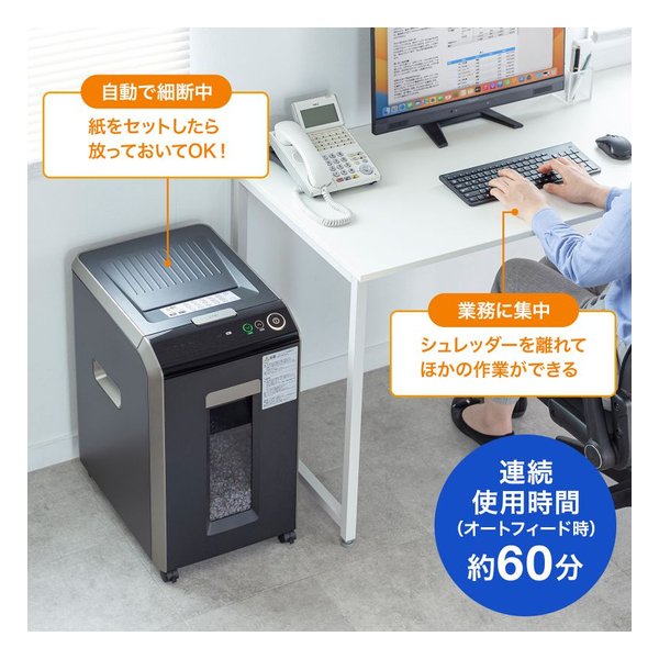 ●連続細断時間は、オートフィード時は約60分、手差し細断は約30分です。