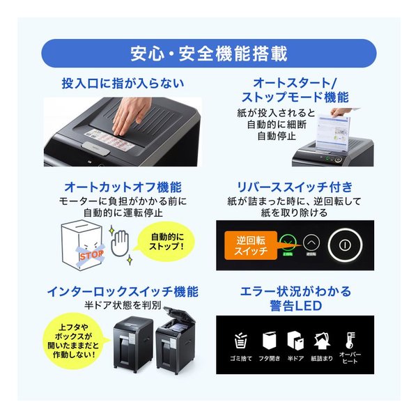 紙が噛み込んだ状態で放置すると自動的に停止するオートカットオフ機能を採用しています。