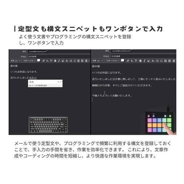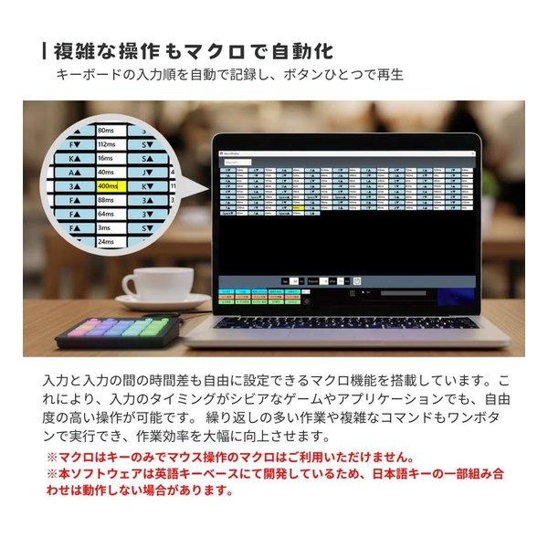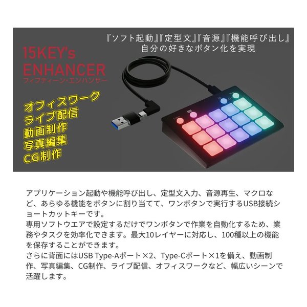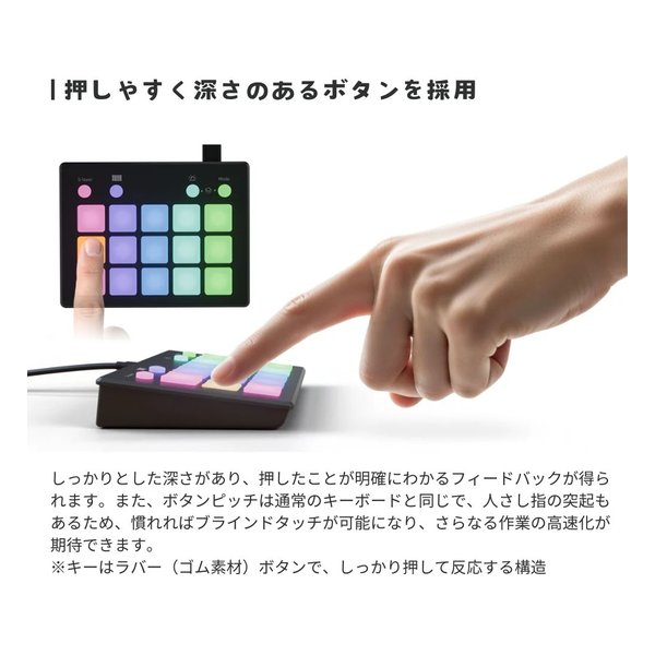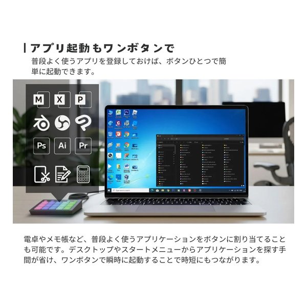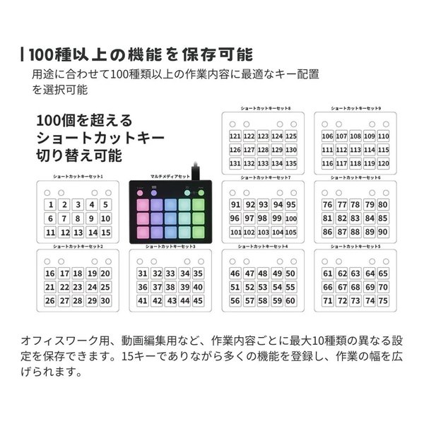 ショートカット、マクロ、定型文入力、アプリ起動など、多様な機能をボタンに割り当て可能。