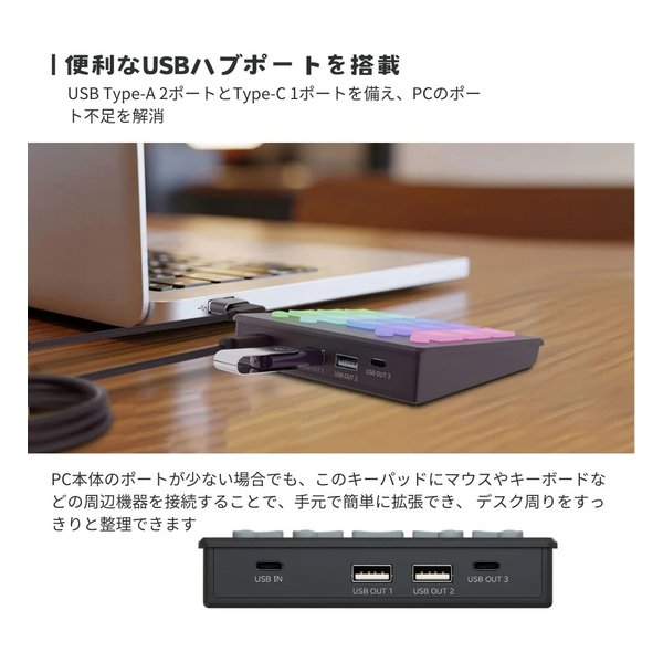 ■USBハブ:USB2.0×2ポート/TypeC×1ポート
