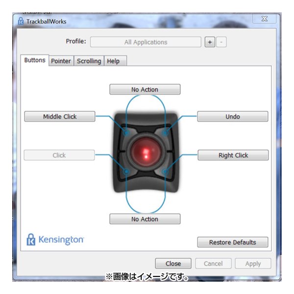 ●ケンジントンTrackballWorksソフトウェアを使用することで、4つのボタンに「切り取り」「貼り付け」など、