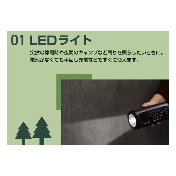 ●内蔵充電池は手回し発電で充電可能