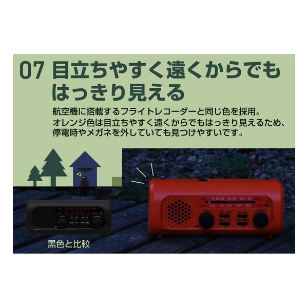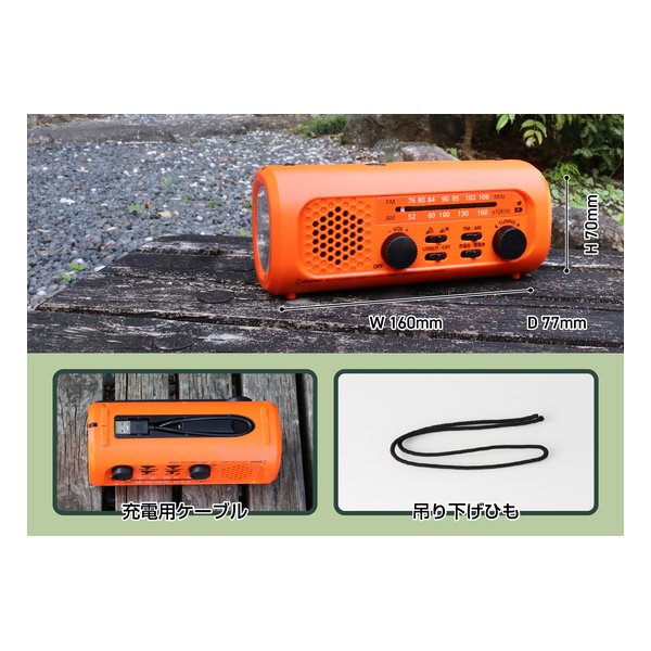 10年保管可能な内蔵コンデンサ充電池を採用(2679814)さすだけ充電ラジオライト3 [オレンジ]
